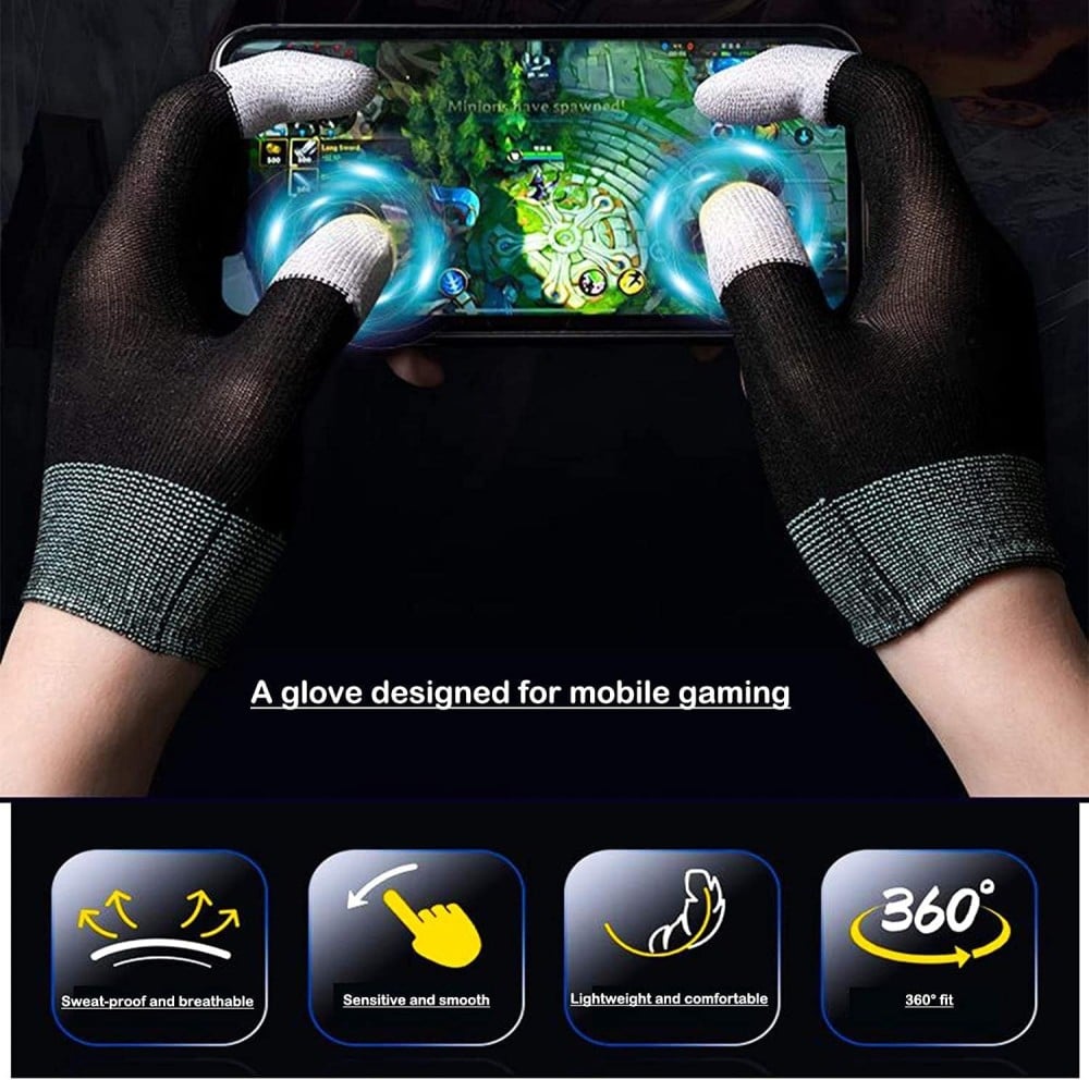 ?【قطعة أثرية لا غنى عنها لترقية الألعاب التنافسية】 تحتوي العبوة على زوج من أغطية الأصابع المحمولة. تتميز بمرونة غنية يمكن استخدامها من قبل البالغين والأطفال، فهي تناسب بشكل أفضل من أسرة الأصابع السابقة، لا داعي للقلق بشأن سقوطها، يمكنك التركيز على اللعبة. ?【جيدة التهوية ومتينة】 أحدث مادة الألياف الفضية جي 1، أطراف الأصابع الفضية الرفيعة للغاية 0.3 ملم أكثر برودة من بصمات الأصابع المطاطية أو القطنية الأخرى، ولن تشعر بالقلق حتى في الصيف أو بعد الاستخدام لفترة طويلة. حياكة سلسة تجعل هذه الأصابع المتحركة أكثر متانة. ?【تستخدم على نطاق واسع】 تدعم حافظات الأصابع التي تعمل باللمس هذه معظم الهواتف المحمولة أو أجهزة التابلت، لذلك يمكنك استخدامها ليس فقط أثناء لعب الألعاب ولكن أيضًا عند استخدام الموبايلات. خفيفة الوزن وسهلة الوضع في حقيبة ويمكن استخدامها إذا لزم الأمر. ?【أصابع مضادة للتعرق】 يمكن لأغطية الأصابع هذه عزل عرق اليد وملامسة الشاشة، وهي غير قابلة للانزلاق ومضادة للسقوط ومضادة للزيوت وبصمات الأصابع وتحسين شعور اللعب وتجنب أخطاء التشغيل.